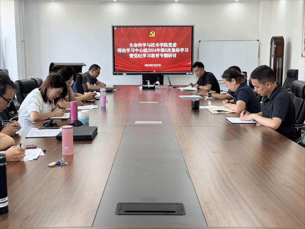 6月27日下午,必赢国际437官网党委在生物楼三楼会议室召开党委理论学习中心组2024年第6次集体学习暨党纪学习教育专题研讨。学院党委理论学习中心组成员参加会议。学习会由学院党委书记苏小波主持。