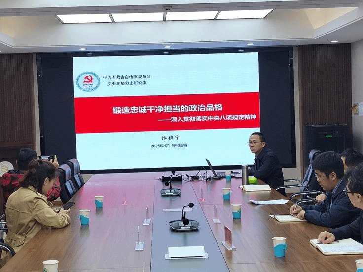 为推进深入贯彻中央八项规定精神学习教育,4月8日下午,内蒙古自治区党委党史和地方志研究室研究三处党支部、内蒙古自治区人民医院康复医学科党支部与学院教工第一支部、第二党支部联合举办了深入贯彻中央八项规定精神学习教育交流会。内蒙古自治区党委党史和地方志研究室研究三处党支部书记张祯宁、内蒙古自治区人民医院康复医学科党支部书记王彦、学院党委副书记、院长红雨、党委副书记、副院长高峰及四个党支部部分党员参加学习交流会。教工第二党支部书记李永主持会议。