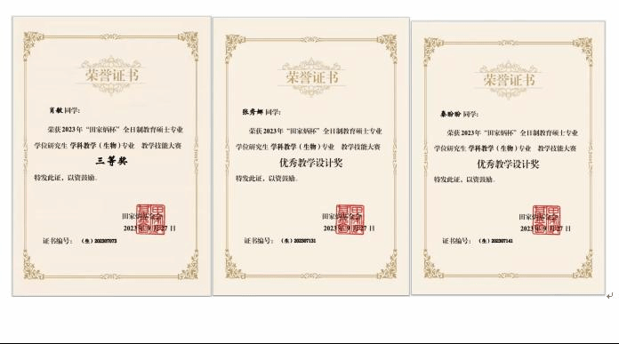 本次大赛共有北京师范大学、华东师范大学、东北师范大学等72所教育硕士培养高校的316名选手提交作品参加初赛,通过专家评审,有57所高校的158名选手入围决赛。经评审一等奖16名,二等奖32名,三等奖48名,优秀教学设计奖62名。必赢官网必赢国际437官网三位同学经过院赛评选和初赛选拔,在指导教师乌云高娃老师的带领下一同前往山东烟台参加决赛。2022级学科教学(生物)专业研究生肖敏获大赛三等奖,张秀娜、秦盼盼获大赛优秀教学设计奖。
