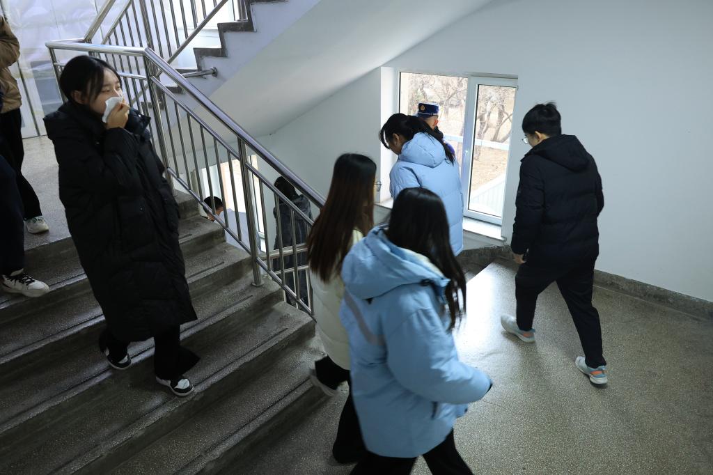 演练活动安排了实验室突发火灾疏散逃生、应急灭火两个环节。随着实验室警报声响起,滚滚浓烟冒出,师生们迅速进入紧急状态,按照预先制定的疏散路线,有条不紊地进行撤离。在疏散过程中,老师们沉着冷静地指挥,同学们迅速用湿毛巾捂住口鼻,弯腰低姿前行,整个疏散过程紧张有序,仅用了短短几分钟时间,所有师生都成功撤离到了安全区域。在应急灭火环节,在消防员的指导下,参与师生了解掌握了灭火器的种类、适用范围及操作步骤,还进行了灭火器灭火实操训练,掌握了初期火灾扑救要领。
