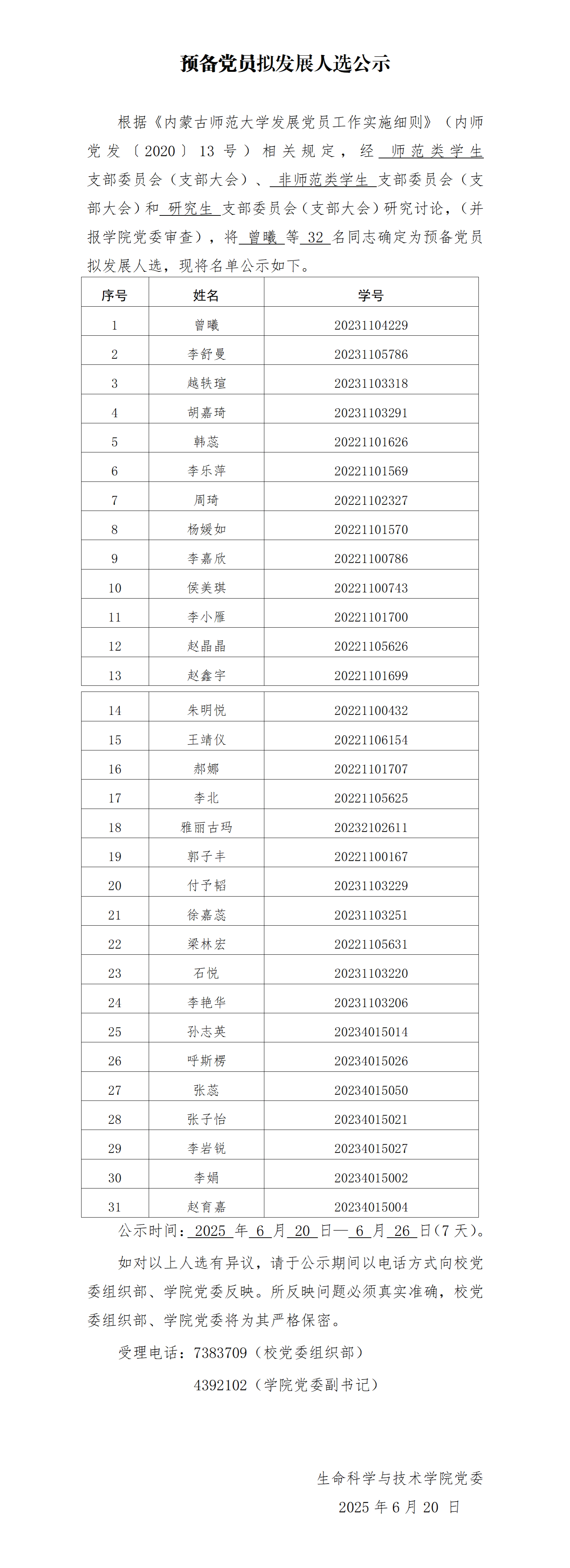 预备党员拟发展人选公示