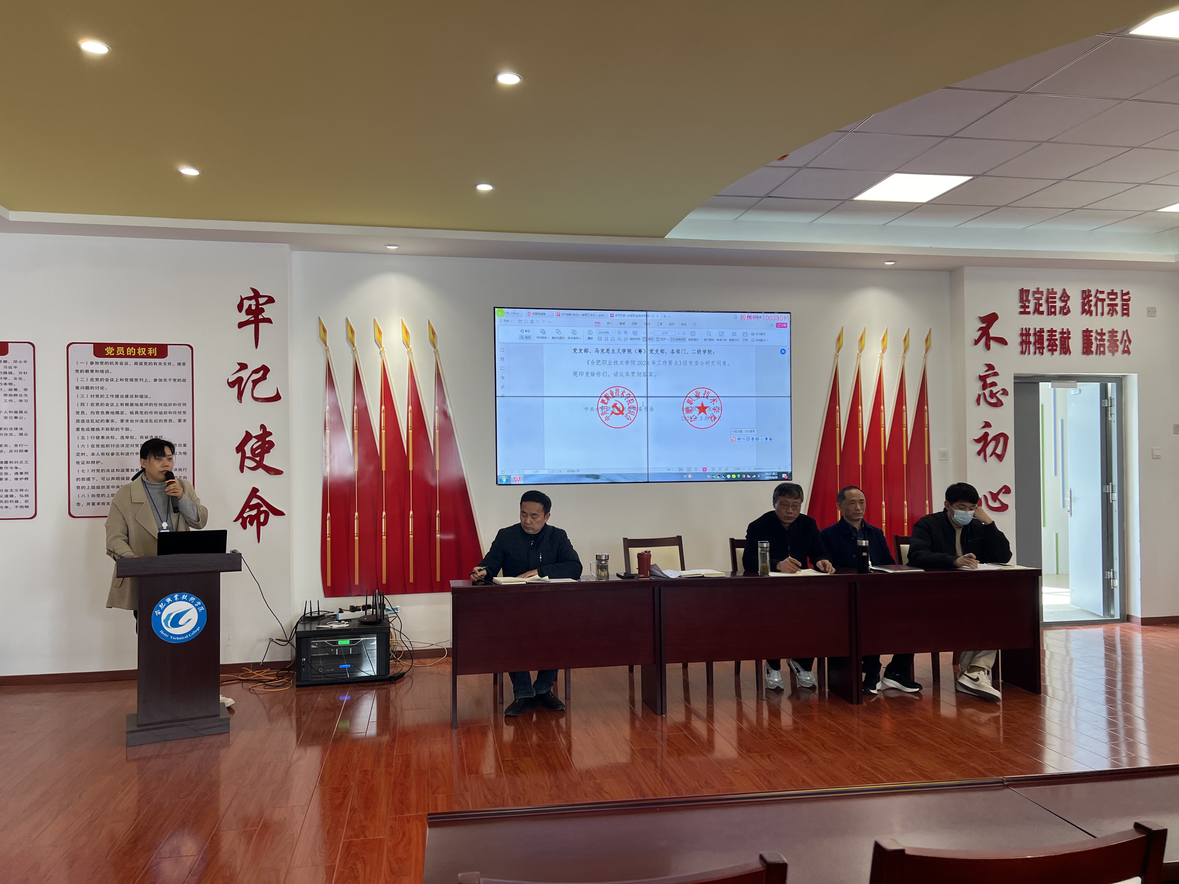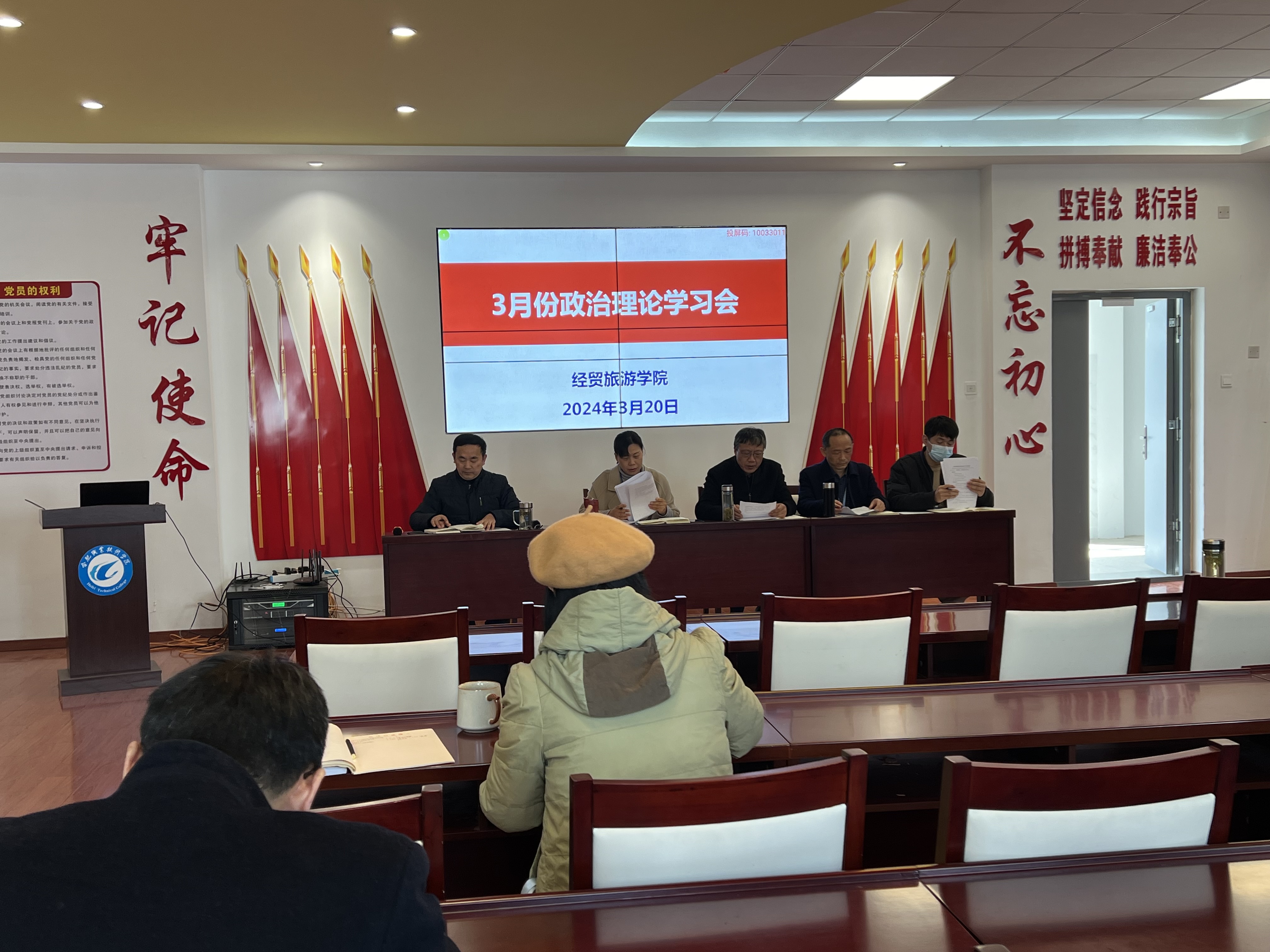 为进一步提升教职工政治理论素养,持续深化教育教学改革,扎实推进各项重点工作,3月20日下午,今年会在党性体验馆召开3月份政治理论学习会暨全体教职工大会。学院党政、全体教职工参加会议,会议由副院长陈继林主持。