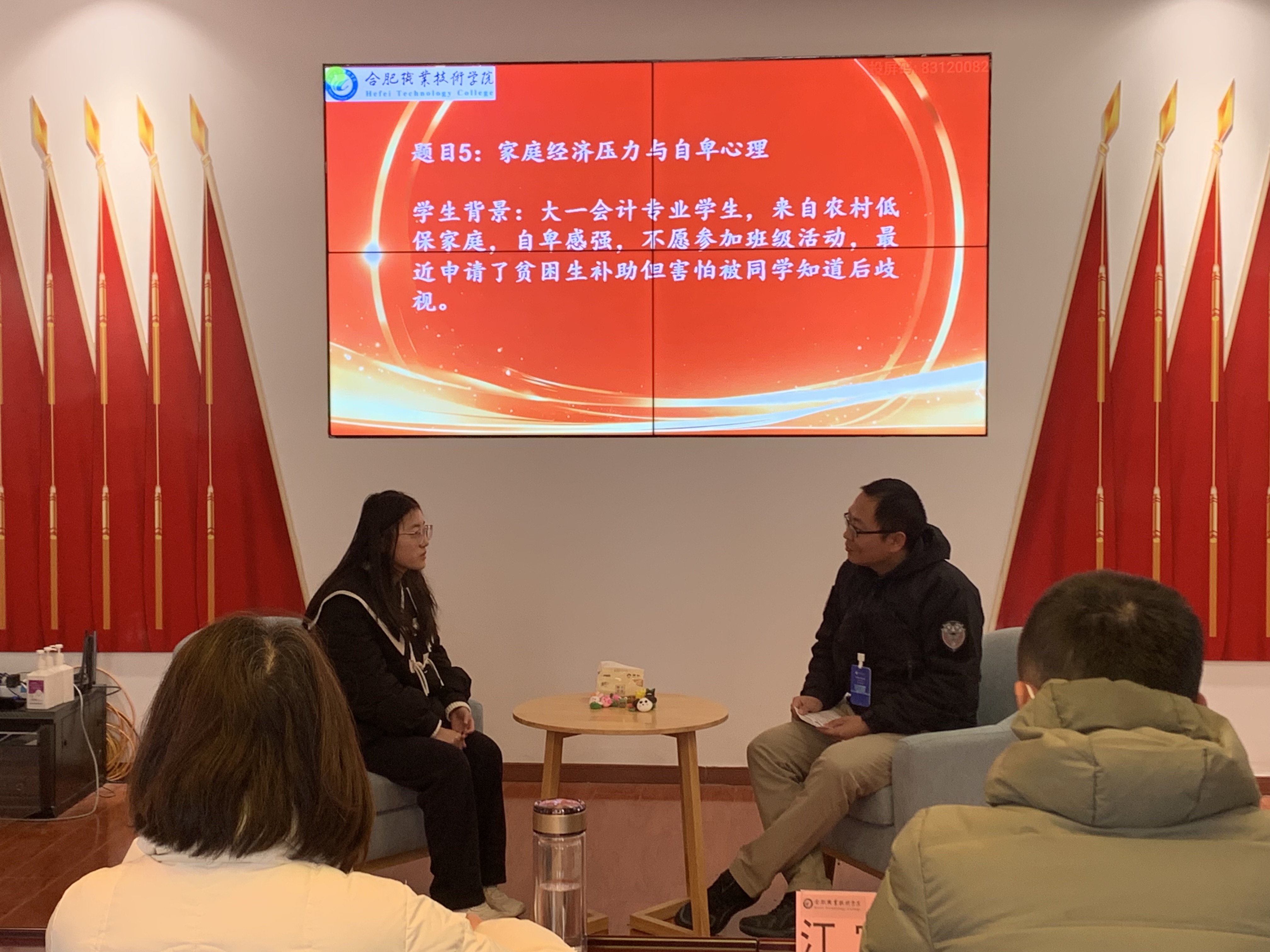 本次大赛紧扣高校辅导员日常工作核心,包含基础知识测试、案例研讨、谈心谈话三大竞赛模块,围绕学生“因专升本压力过大产生焦虑情绪““宿舍成员因作息差异引发冲突”“因自卑而不敢申请贫困补助”“创业与厌学价值冲突”等方面全面检验辅导员的理论功底和政策把握能力、问题分析能力、原因探究与解决方案能力,展现出辅导员在解决学业困难、心理危机、人际交往矛盾、就业困难等典型问题中扎实的专业知识和清晰的逻辑思维。情景模拟环节则还原了辅导员日常谈心谈话场景,辅导员们迅速进入角色,用共情的态度、专业的方法与“学生”沟通交流,灵活运用思想政治教育技巧化解矛盾,充分彰显了良好的沟通协调能力和应急处置能力。