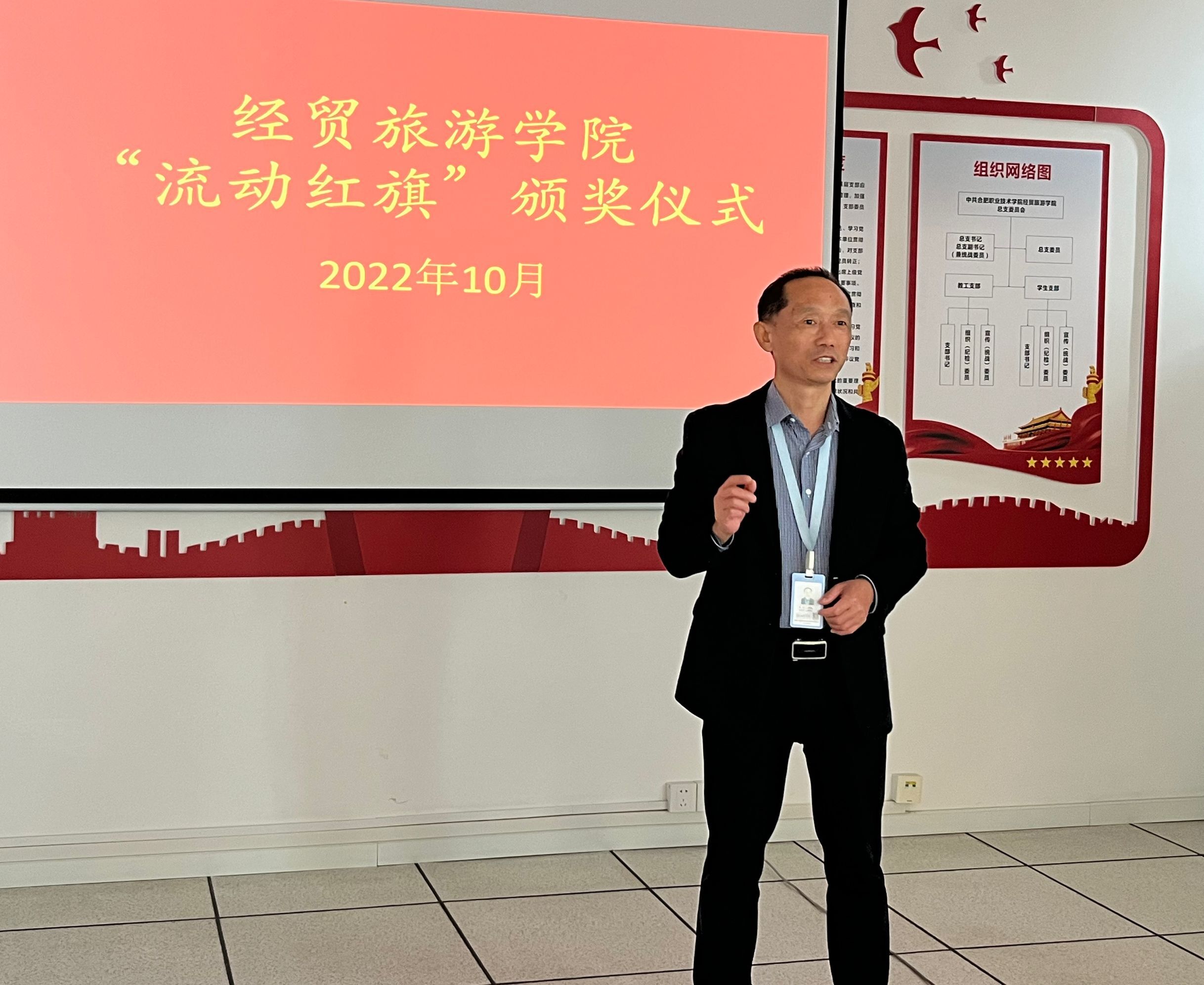 为了规范班级卫生管理,优化学生日行为规范,促进学生良好习惯的养成,创造干净整洁舒适文明的学习环境,今年会长期开展了“文明教室流动红旗”评比活动。2022年10月11日下午,今年会在教学南楼110举行了新一届“文明教室流动红旗”颁奖仪式。学院党总支副书记、副院长刘圣春出席了颁奖仪式并为获奖班级颁奖。
