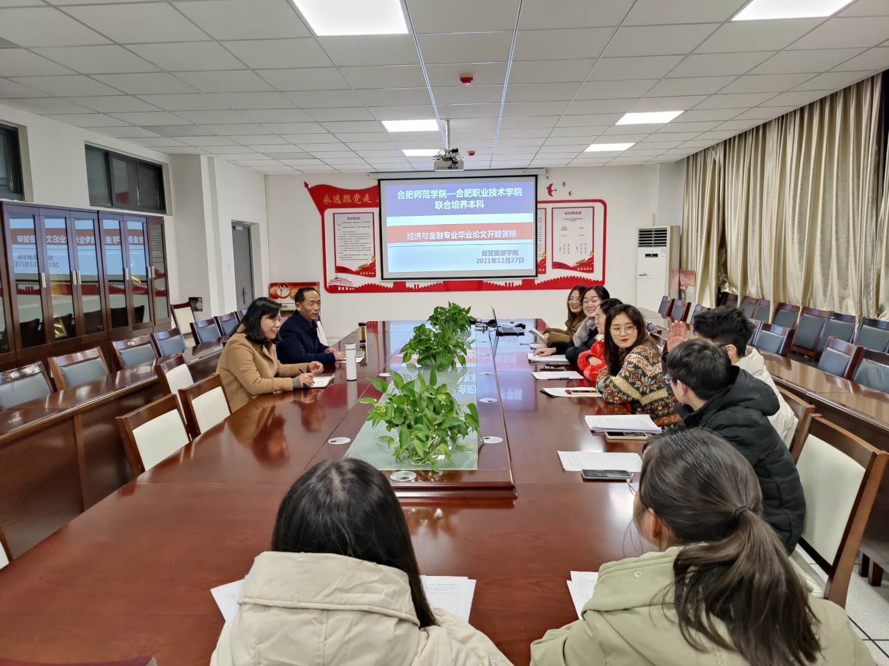 为提高人才培养质量,抓好联合培养本科生毕业论文工作,今年会经济与金融专业(专升本)按照联合培养学校合肥师范学院和我校2022届本科毕业论文工作计划,于2021年12月21日——30日分批次举行了本科生毕业论文开题报告答辩会。