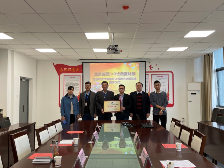 李建波向与会人员介绍了北京首冠教育科技集团有限公司在“1+X”职业技能等级证书方面的工作开展情况。他表示,北京首冠教育科技集团有限公司作为“1+X”大数据财务分析职业技能等级证书的培训评价组织,非常重视培训基地建设项目,本着“优势互补、资源共享、合作共赢”的原则,在师资培训、人才培养、证书考核等方面与我校开展全面合作。