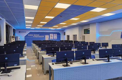 财务云共享实训室建于2022年,投资约170万,占地约150平方,可同时容纳70名学生开展实训教学。