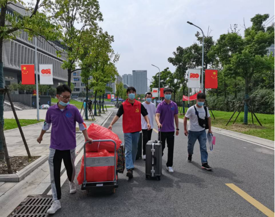 虽已立秋,天气依旧炎热。迎新志愿者们的热情却毫无退却。在学校西门通道处,志愿者们严格按照返校流程,认真接待每一位新生。测体温、搬行李、做登记、进宿舍,迎新工作有条不紊地进行。