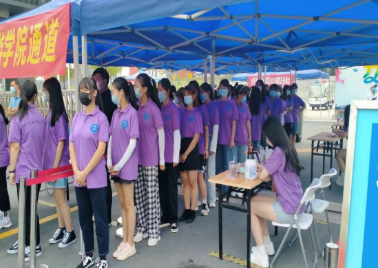 在学院报到点处,全体2021级新生班主任和班主任助理,仔细审核学生学籍信息,耐心帮助新生完成报道。由于疫情防控需要,新生家长无法进入校园。学院党员老师和志愿者同学们,耐心细致的完成每一位新生的全部报道手续,得到了学生家长的理解和肯定。