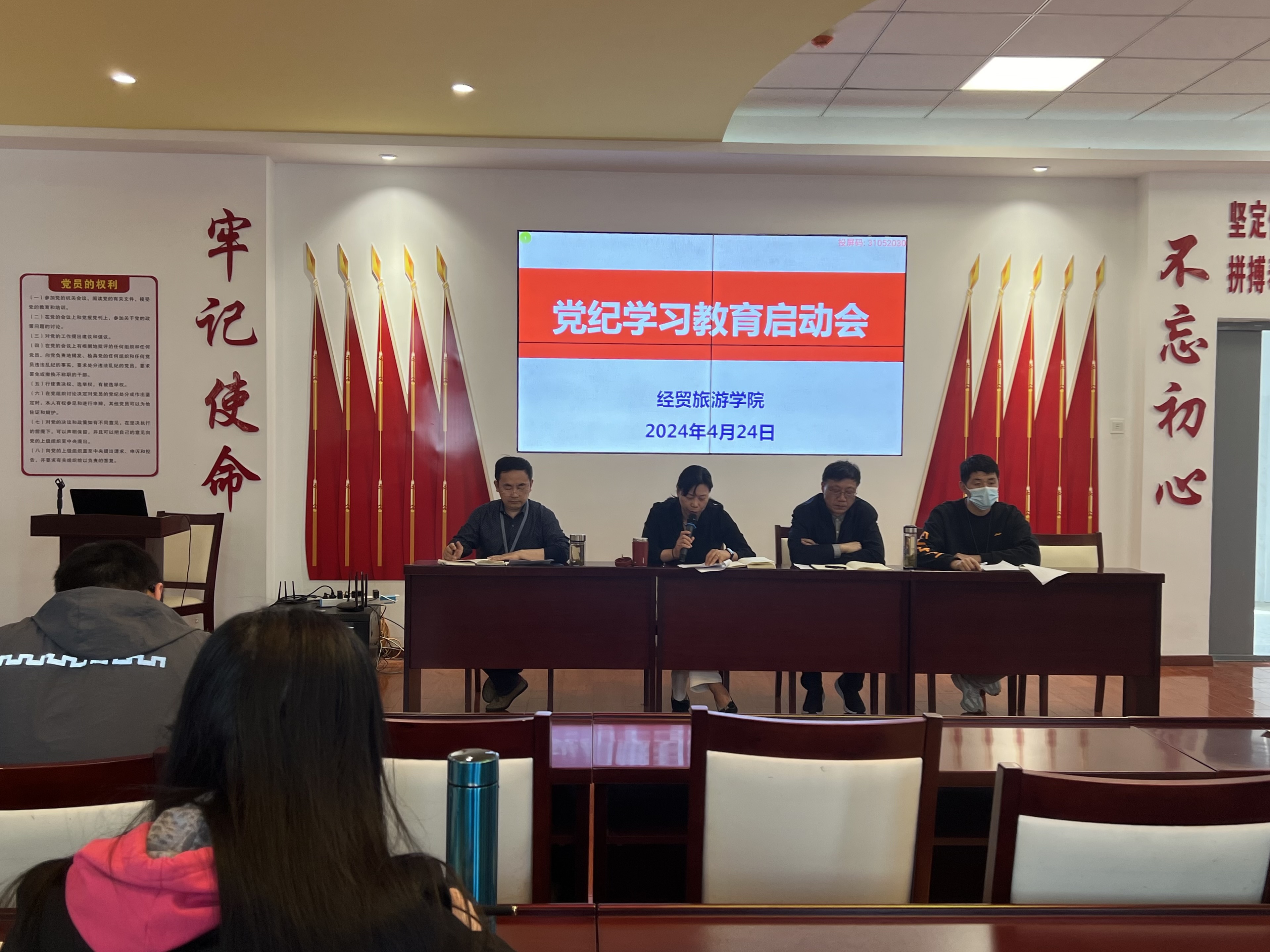4月24日下午,今年会在党性体验馆召开党纪学习教育启动会,全面安排部署学院党纪学习教育工作任务。学院党政、全体教职工参加会议,会议由副院长陈继林主持。