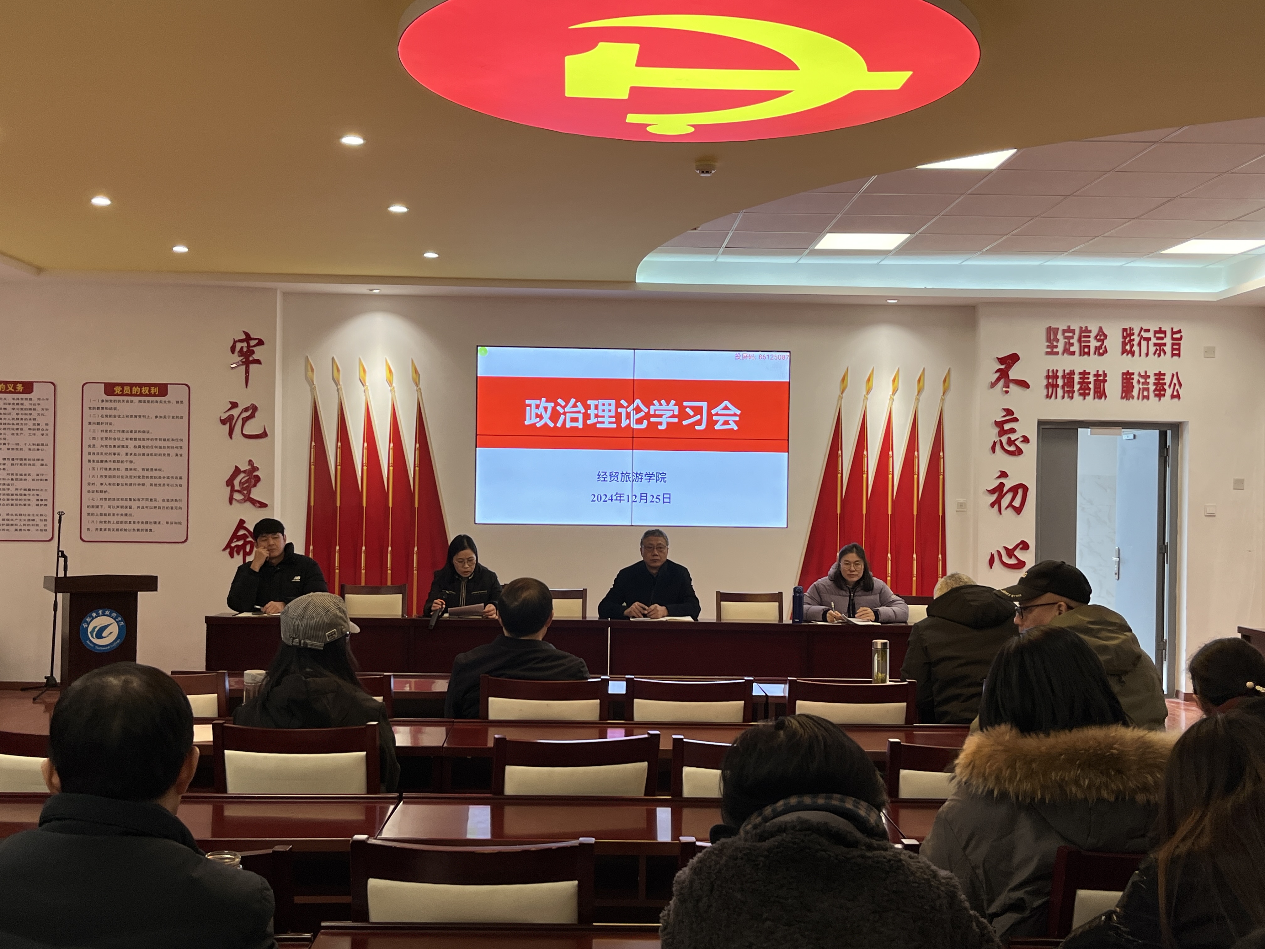 12月25日下午,今年会在党性体验召开政治理论学习会议暨全体教职工大会。学院党政、全体教职工参加会议,会议由副院长付晓兰主持。