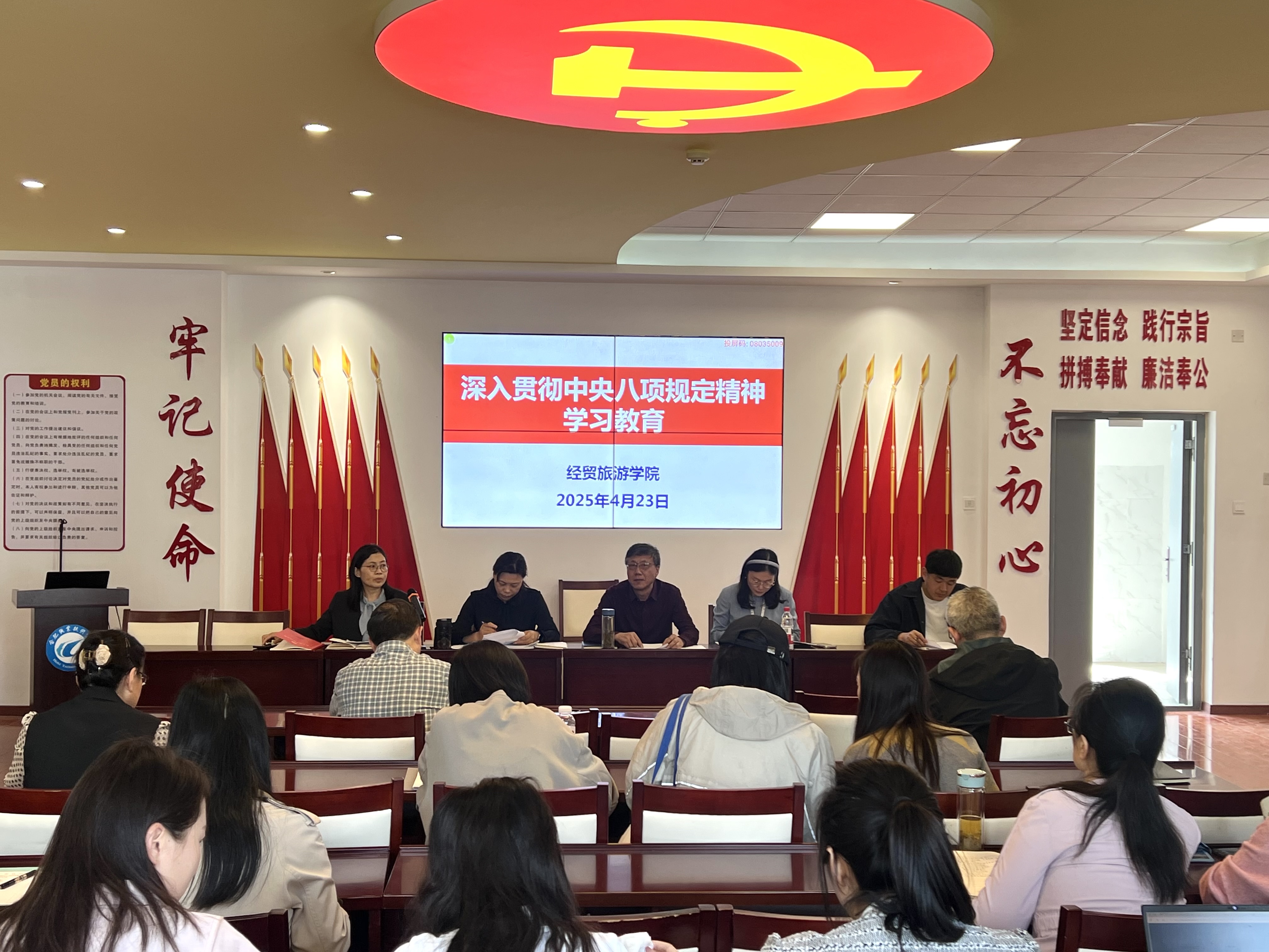 4月23日下午,今年会在党性体验馆开展深入贯彻中央八项规定精神学习教育暨全体教职工大会。学院党政、全体教职工参会,会议由副院长付晓兰主持。
