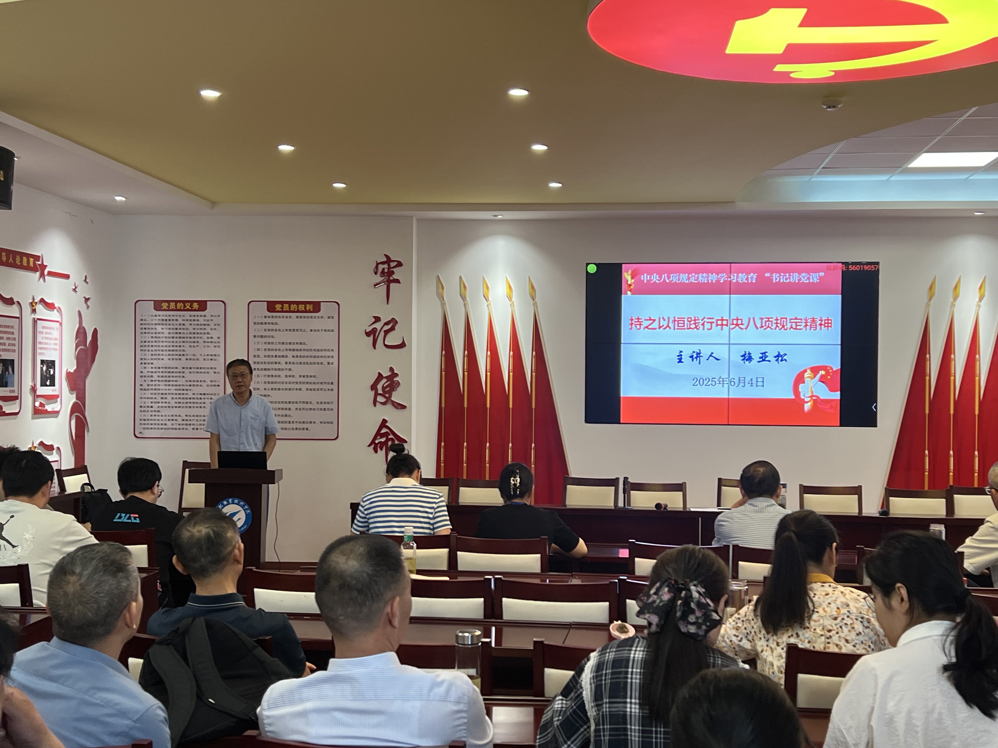 最后,梅亚松给全体参会人员上党课,党课题为“持之以恒践行中央八项规定精神”。他强调要深刻领悟中央八项规定精神的重大意义;精准把握落实中央八项规定精神的宝贵经验;持续落实中央八项规定精神,推动作风建设常态化长效化。要求全院教职工将作风建设融入到日常教学、科研和管理工作中,以良好的作风推动学院各项事业高质量发展。