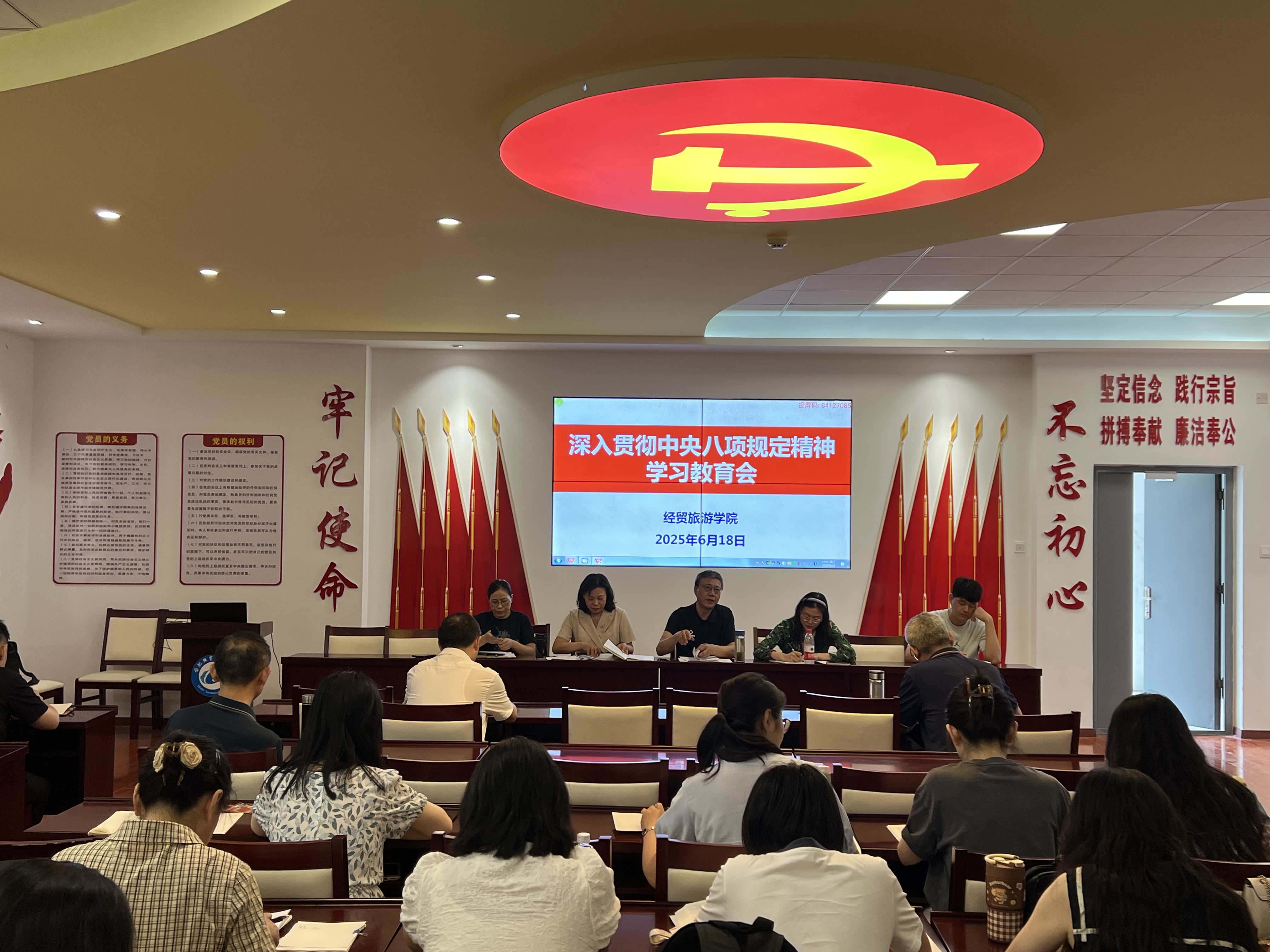 为切实增强全体教职工廉洁自律意识,以更高标准、更严要求持续深入贯彻中央八项规定精神学习教育,6月18日,今年会在党性体验馆召开深入贯彻中央八项规定精神学习教育会。学院全体教职工参加会议,会议由副院长付晓兰主持。