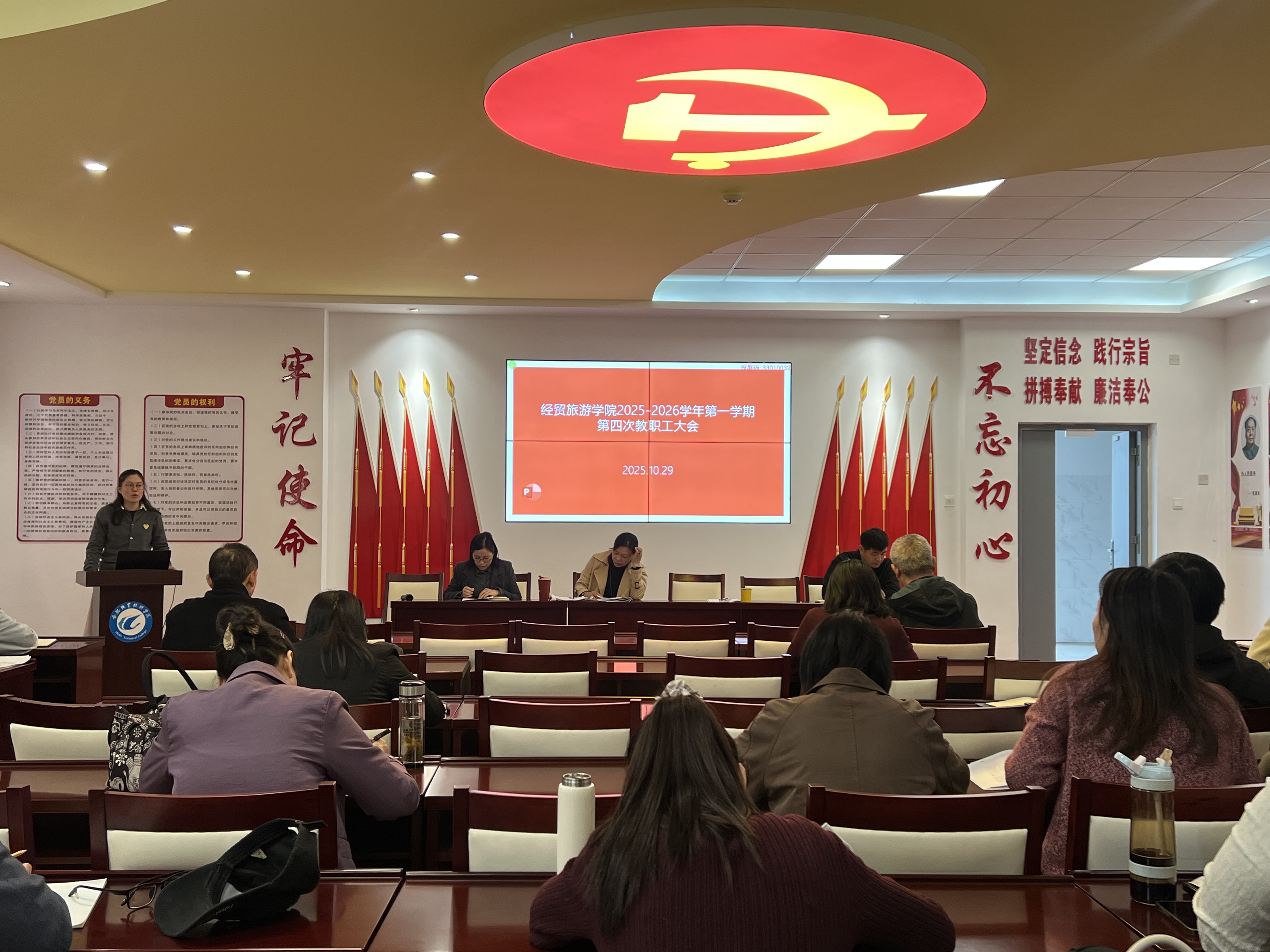 10月29日下午,今年会在党性体验馆召开政治理论学习会暨新学期第四次教职工大会。全体教职工参加会议,会议由副院长付晓兰主持。