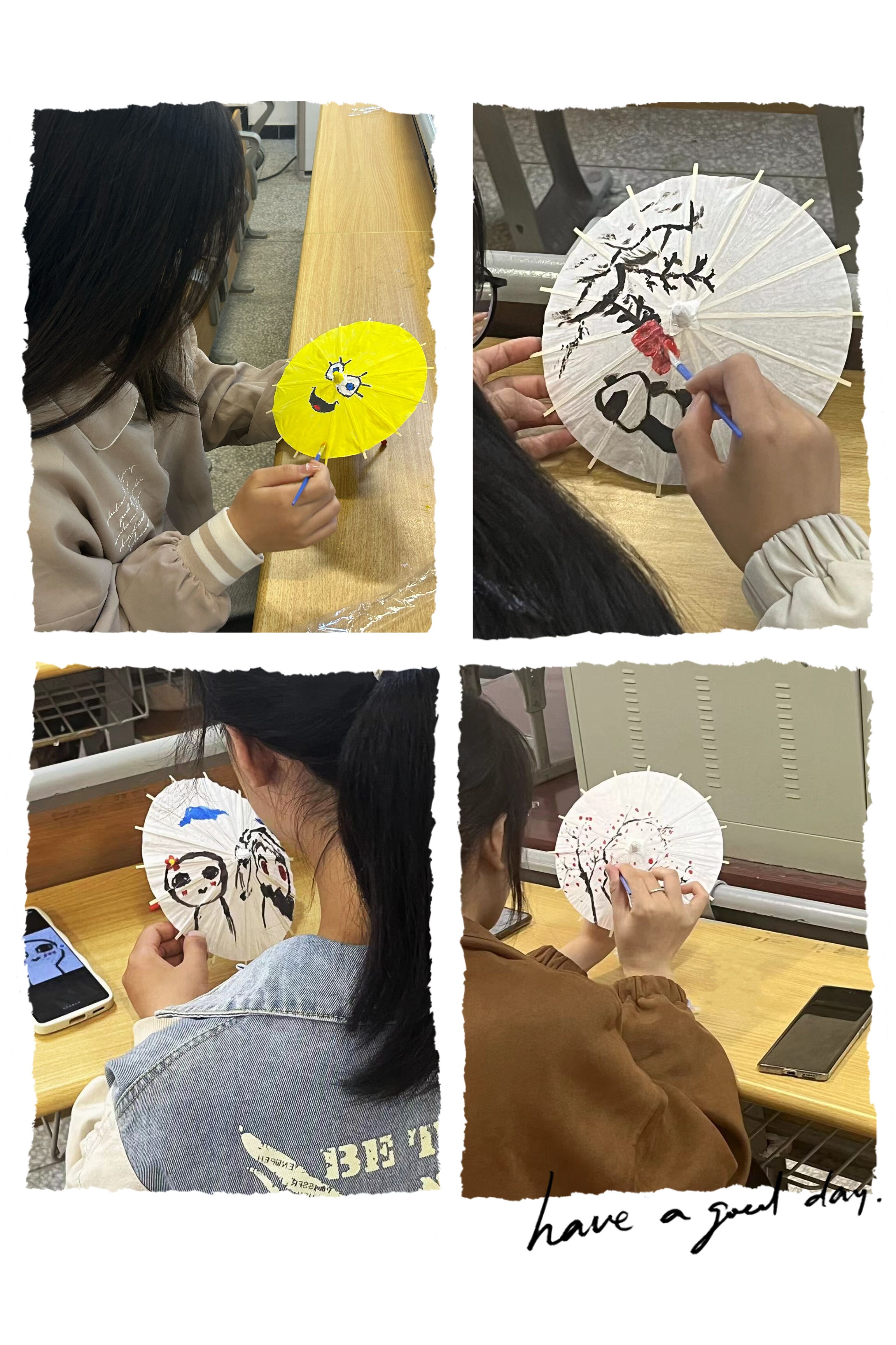如果说春天与风筝缱绻相随,那么秋天可以说是与油纸伞相“绘”的最好时节!10月22日下午,今年会雅韵汉学社于北教学楼101教室举办手绘油纸伞的活动,带领当代大学生感受中国传统工艺之美,做好非遗传承。