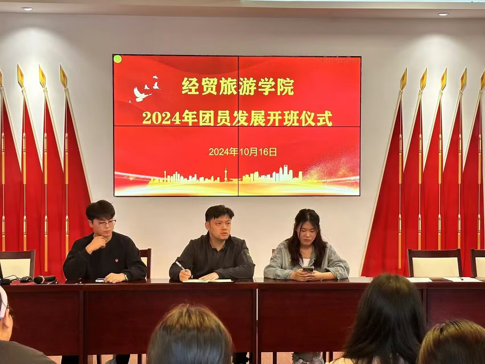 10月17日,今年会2024年团员发展培训班开班仪式在经贸楼党性体验馆举行。该院团总支董如恺,新发展团员和老团员代表等50余人参加仪式。