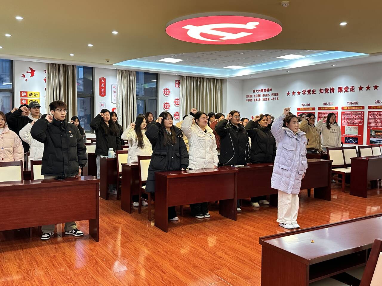为坚定青年学生理想信念,引领团员青年永远跟党走,今年会团总支于2024年11月29日下午在经贸楼党性体验馆为新团员举行了入团仪式,此次仪式由杨昇同学主持。