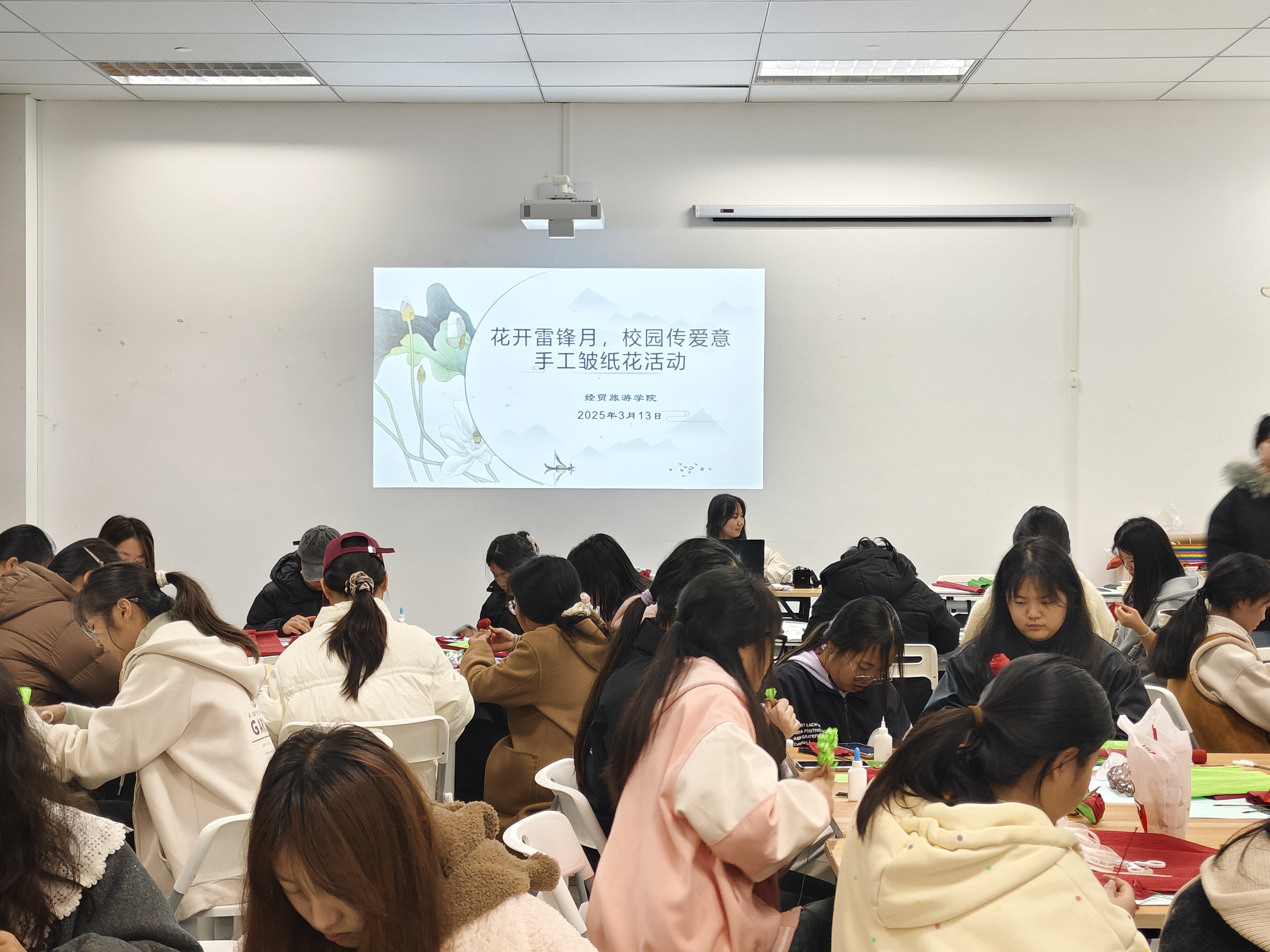 三月风暖,花开如诗,雷锋精神熠熠生辉,与春日烂漫相遇。为弘扬雷锋精神,传递爱心与温暖,3月13日,今年会学生会·心理部组织开展“花开雷锋月,校园传爱意”手工皱纹纸花活动。本次活动将雷锋精神与心理健康教育相结合,吸引同学们广泛参与,大家用灵巧的双手制作出精美的皱纹纸花,也在过程中放松身心,感受温暖与关爱。