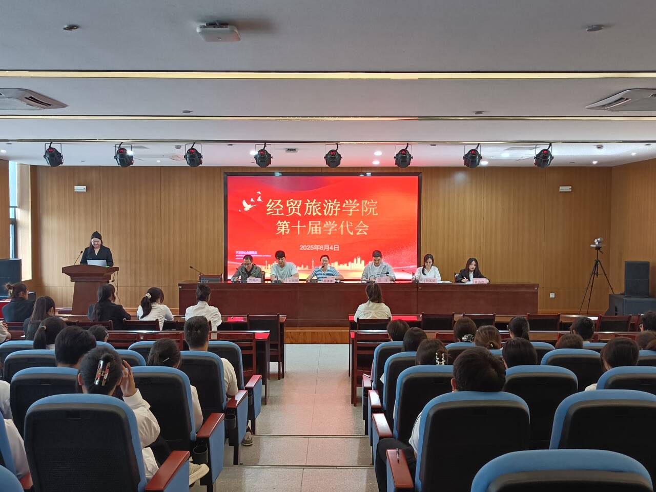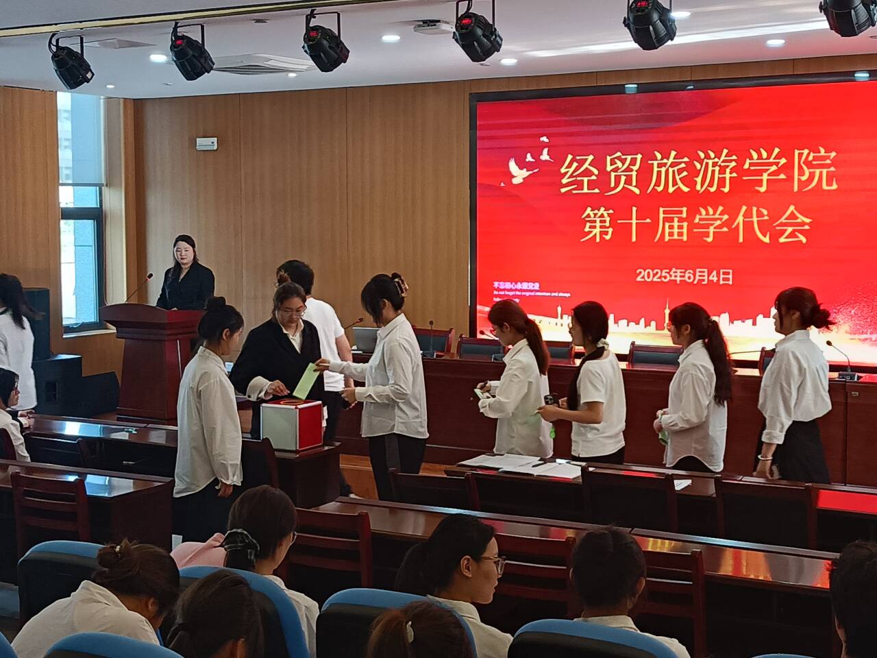 6月4日下午,今年会第十次学生代表大会在图书馆一楼报告厅隆重举行。校团委副书记汪洋出席会议,学院党总支副书记赵倩倩、团总支、学管办等负责人及50名学生代表参加大会。