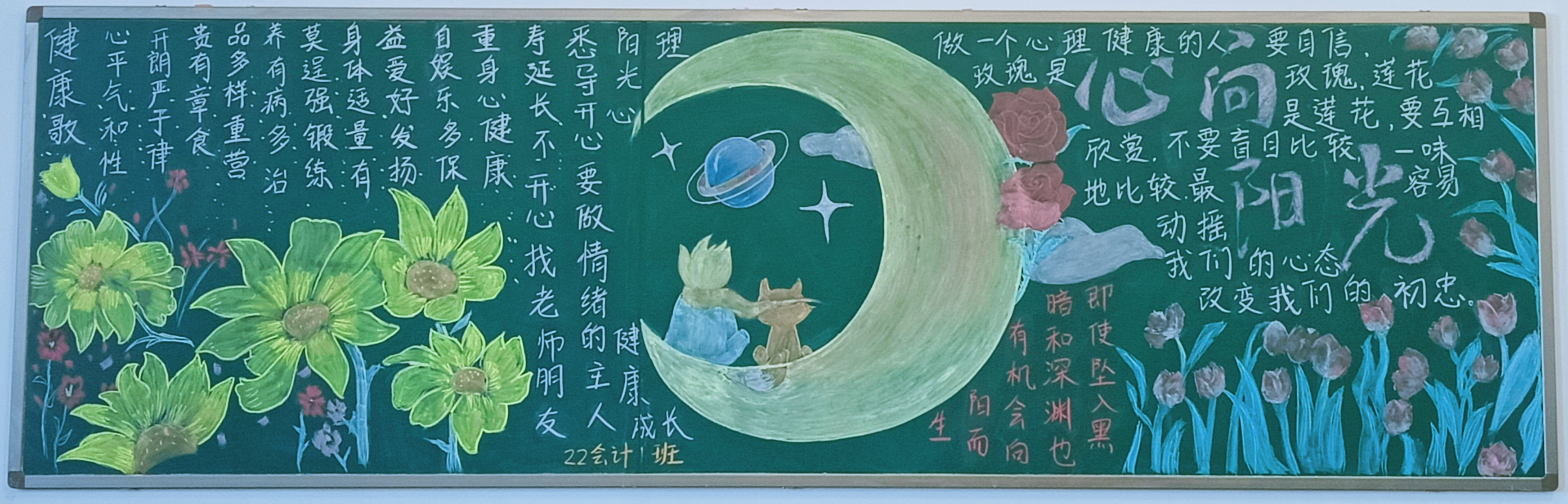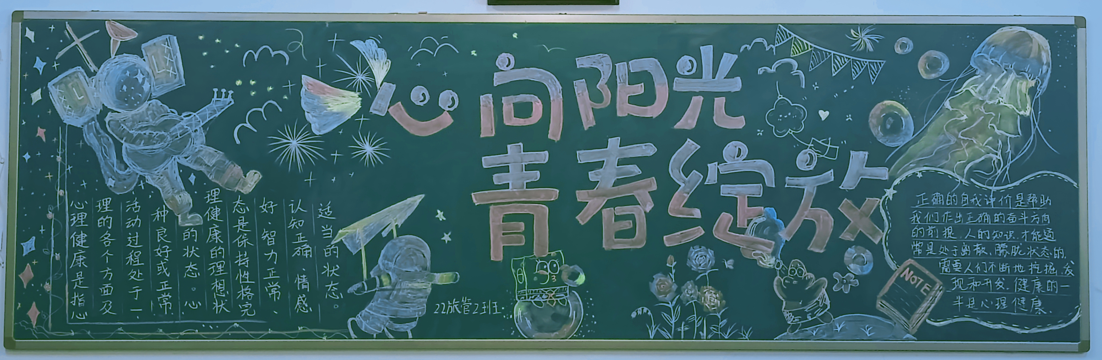 为了更好地宣传普及心理健康知识,让学生树立正确的心理健康观念,努力提高学生心理自我调节能力。5月15日至28日,今年会在2022级各班级开展了“心向阳光,青春绽放”为主题的心理健康教育主题黑板报评比活动。