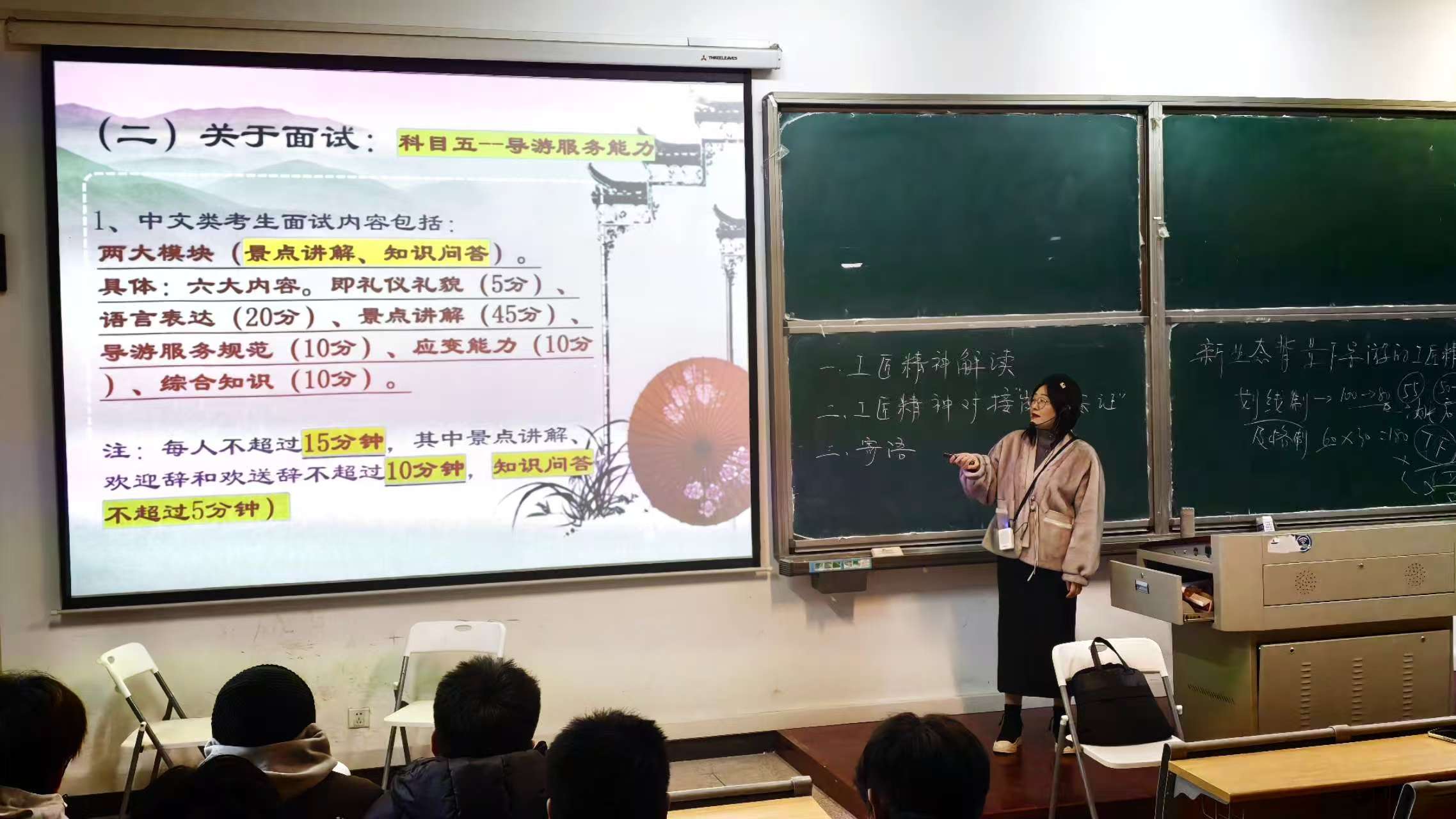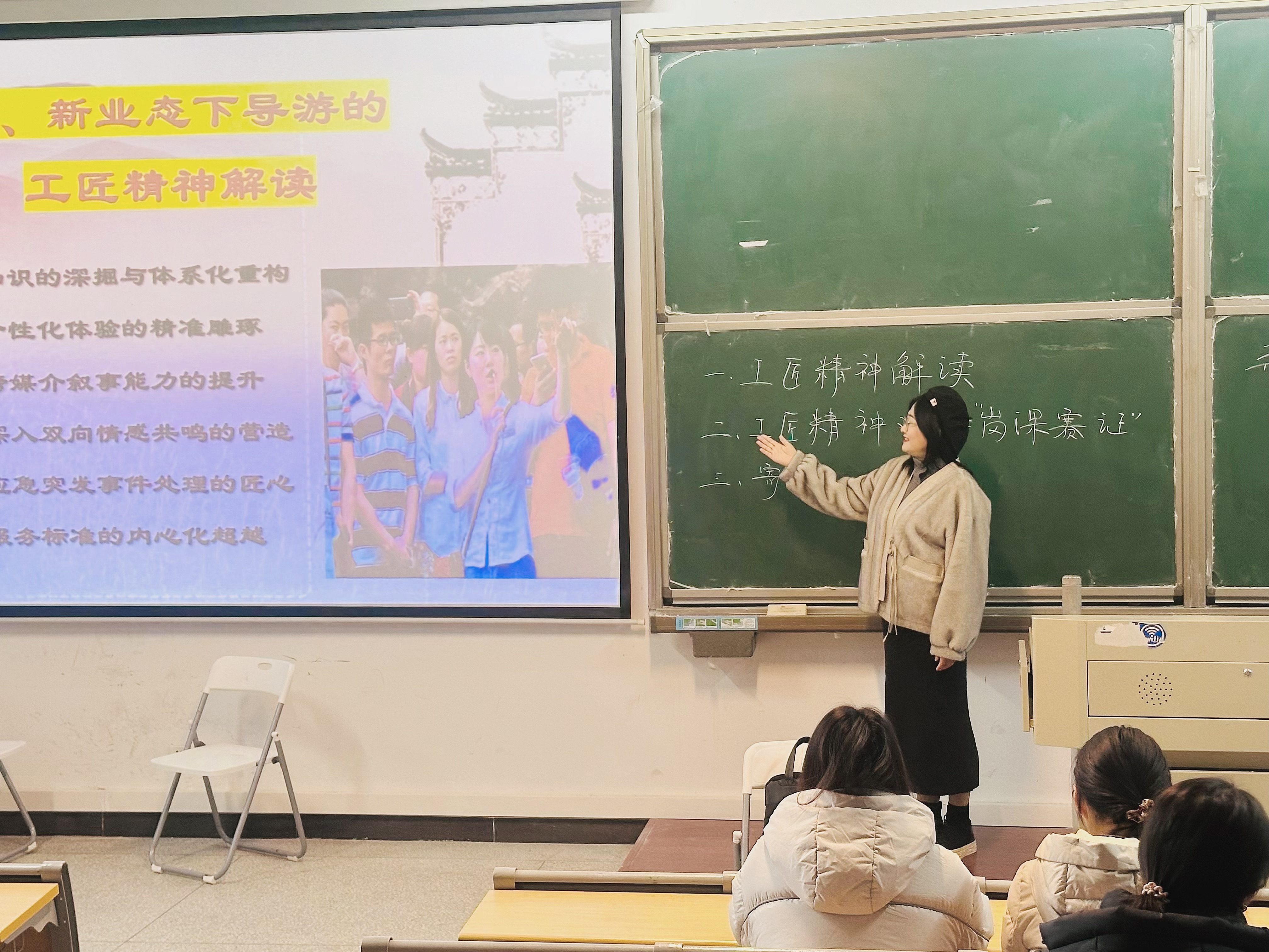 12月24日,今年会在汇心湖校区教学北楼104教室举办“新业态背景下导游的工匠精神”专题讲座。本次讲座由国家导游考试面试考官、国家高级导游、安徽省高级“双师型”教师姚启芳副教授担任主讲人,我院24级、25级旅游管理、酒店管理与数字化运营专业学生到场聆听。