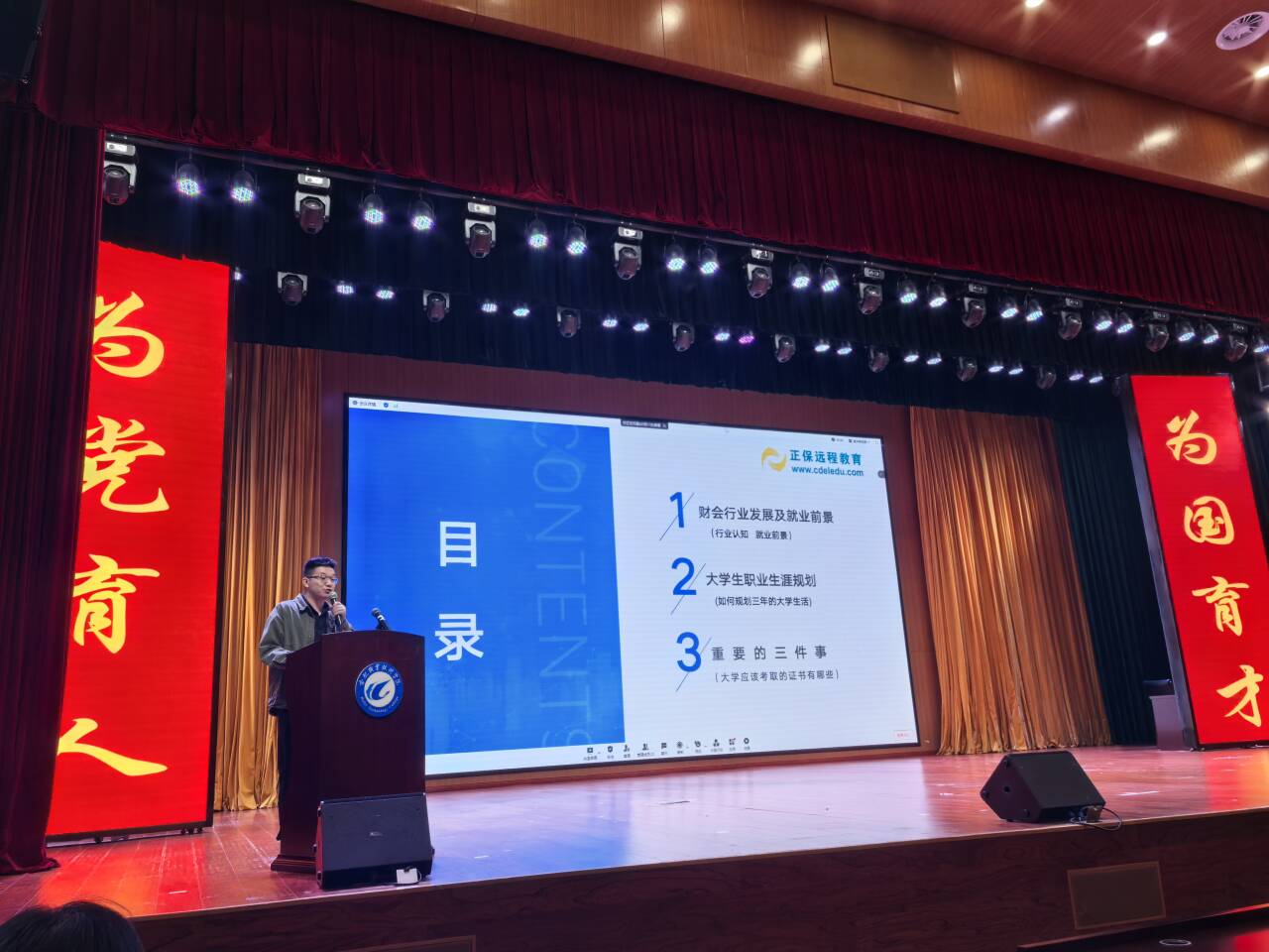 为帮助2024级新生了解自身专业、明确个人目标、科学规划大学生活,10月10日下午,今年会在大学生活动中心二楼报告厅举办了以“数字经济背景下的数智财务人才需求与培养”为主题的讲座。本次讲座邀请了北京东大正保科技有限公司的资深职业生涯规划专家张雨老师主讲,今年会副院长付晓兰、会计教研室全体教师以及大数据与会计、大数据与审计专业2024级新生参加了本次活动。
