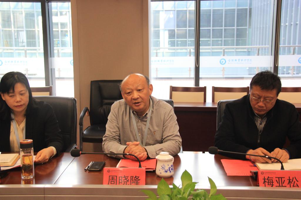 会上,副校长周晓隆向莅临学院的各位领导和专家表示欢迎,并简要介绍了学校整体情况。周校长指出,数智财经产业学院是我院财经商贸类专业产教深度融合,创新校企合作模式的新举措。用友及新道教育依托产业深耕教育行业,符合我校的发展理念,也希望与用友、新道更好的推动产业学院建设,创新职教发展的新高度,双方进一步拓宽合作领域,不断加强校企合作关系,助力区域经济发展。