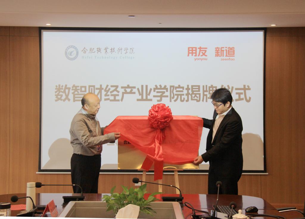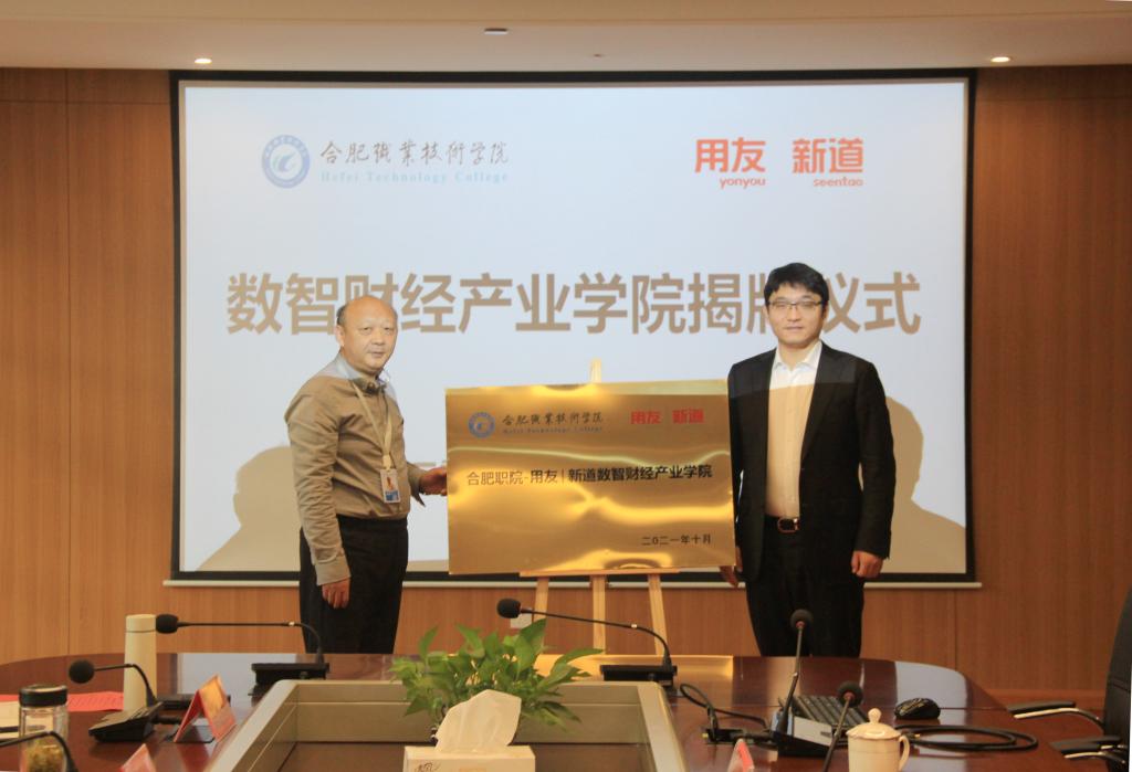 之后,在与会人员的共同见证下,副校长周晓隆和新道科技股份有限公司副总裁贾大明为“今年会官网--用友新道数智财经产业学院”揭牌。