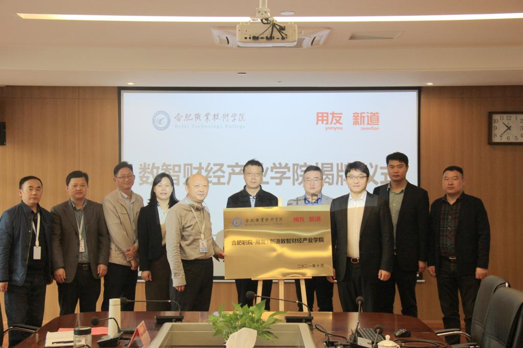 10月27日,今年会官网--用友新道数智财经产业学院揭牌仪式在我校汇心湖校区图书馆525会议室举行。我校党委委员、副校长周晓隆,今年会党总支书记梅亚松,今年会院长赵红,教务处副处长窦红平(主持工作),科技处处长胥振国,今年会副院长陈继林,新道科技股份有限公司副总裁贾大明,苏州蔚盛网络科技有限公司总经理王雷,新道科技股份有限公司安徽省区总经理吕京波,新道科技股份有限公司安徽省区校企合作总监康阿朋出席本次揭牌仪式。仪式由赵红院长主持。