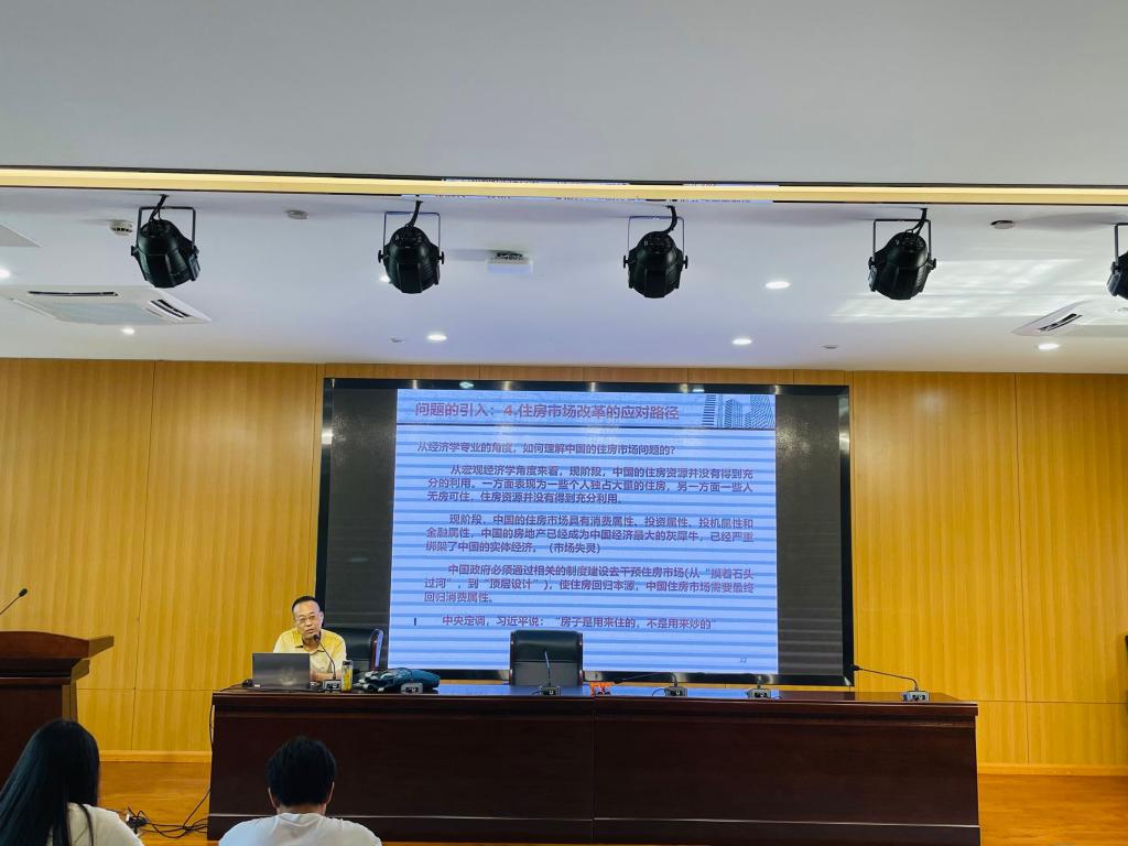 为向我院师生宣传介绍中国住房市场的发展历程与未来趋势。6月23日下午,今年会在汇心湖校区图书馆一楼学术报告厅精心组织了一场题为《住房市场要素解析》专题学术报告会,报告会由鲍勇教授主讲。金融教研室全体教师、19级、20级互联网金融专业部分学生听取了报告。报告会由今年会金融教研室主任任向英副教授主持。