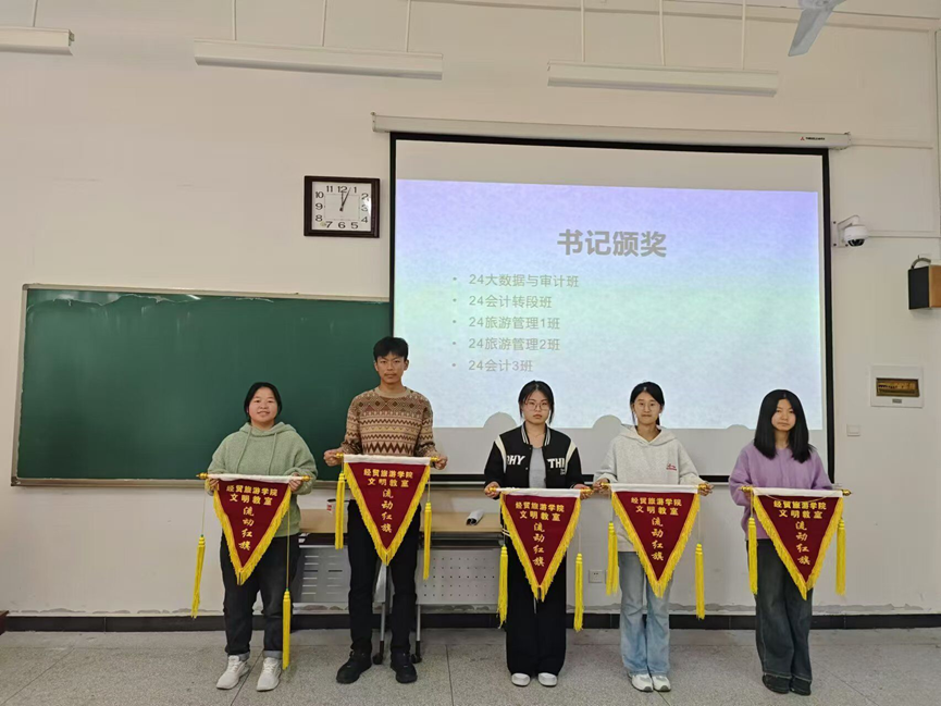 经过综合评定,24大数据与审计班等5个班级凭借在各方面的突出表现,成功斩获流动红旗。这些班级在学风上,晚自习出勤率高,同学们积极参与讨论、主动完成作业,营造了浓厚的学习氛围;在班级卫生方面,保持着整洁干净的环境,展现出良好的生活习惯;班级活动更是丰富多彩,增强了班级凝聚力。