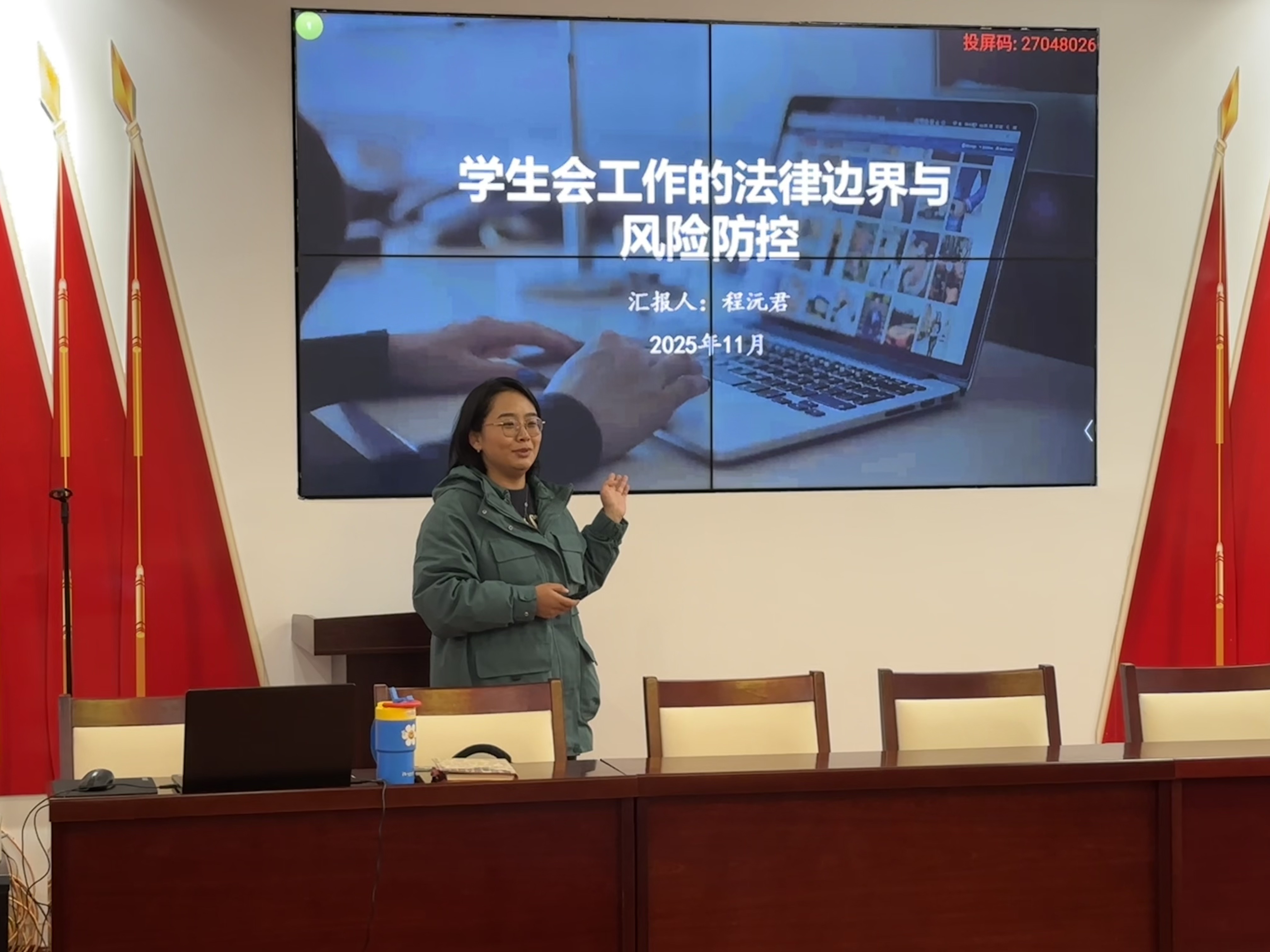 明晰法律边界 筑牢防疫防线 11月24日,汽车应用与轨道交通学院程沅君老师开展专题授课,结合政策法规,通过案例明晰学生会工作的法律边界,强化学生干部法治意识。