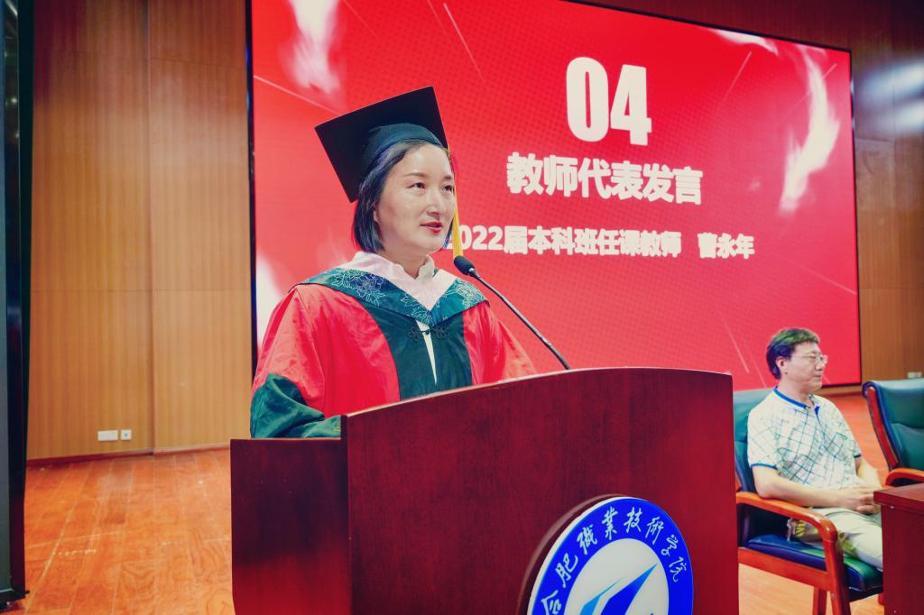 2020级经济与金融2班李雯同学代表毕业生发言。发言中,她感恩母校的悉心栽培和老师的谆谆教诲,感谢同学们的互相帮助和扶持鼓励。她以勇敢面对未来,不忘教诲,勇于挑战与全体毕业生互勉。同学们在现场同唱歌曲《再见》,再见,同学们!再见,母校!