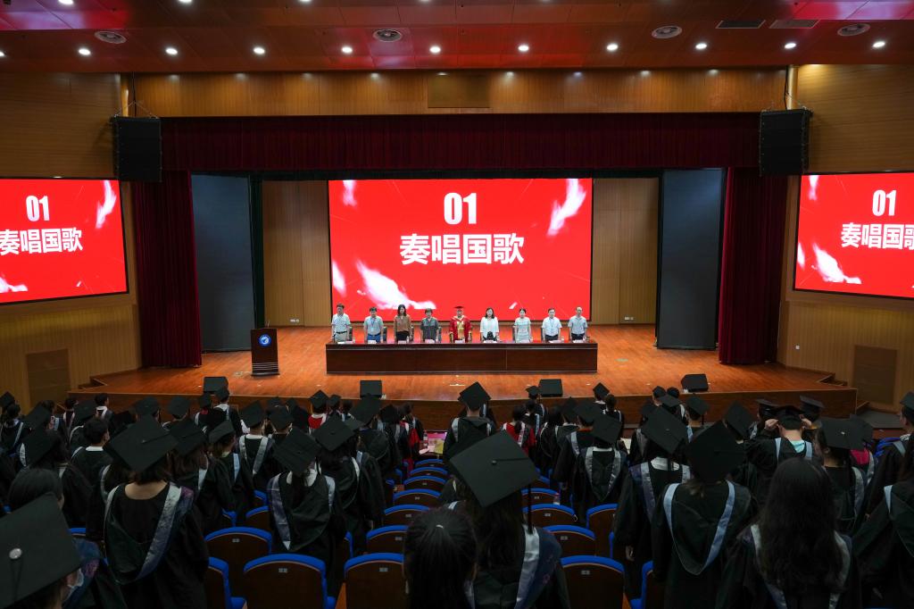 毕业典礼在庄严的国歌声中拉开帷幕。